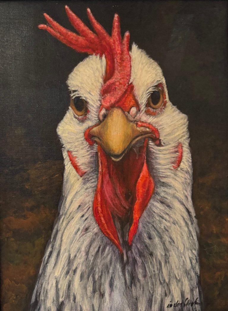 Neben den detaillierten Farbstiftzeichnungen die Frau in der Stroth überwiegend anfertigt, arbeitet Sie auch in Acryl oder probiert sich im Einzeldruck aus. Dieses ausdrucksstarke Werk ist mit Acryl auf Leinwand gemalt.
