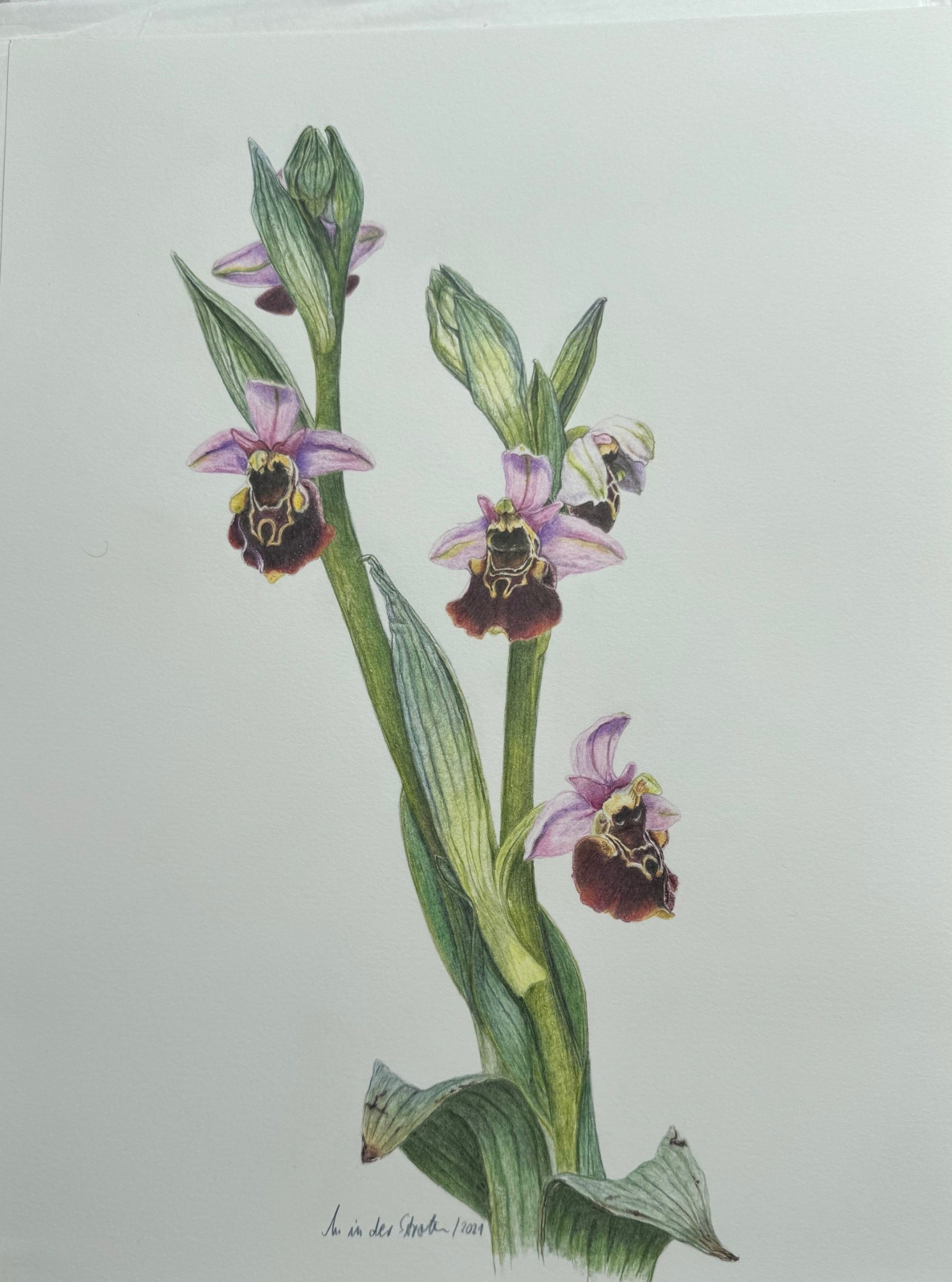 Marlene in der Stroth hat über die Jahre Ihren Stil gefunden. Ihr Werk konzentriert sich auf Flora und Fauna der Umgebung ihres Heimatortes und ist das Ergebnis langjähriger Naturbeobachtung. Die Werke zeichnen sich durch klare Bildstrukturen, präzise Lichtführung und eine ausgeprägte Raumbildung aus, wobei Licht und Schatten plastische Formen erzeugen. Die Arbeiten verbinden botanische Leidenschaft mit einer eigenständigen zeichnerischen Sprache und zeigen eine Tendenz zur sinnlichen und dennoch detailreichen Darstellung von naturhaften Motiven. Verschiedene Ausstellungen dokumentieren ihr Engagement und ihre kontinuierliche Auseinandersetzung mit der Natur als künstlerischer Inspirationsquelle.